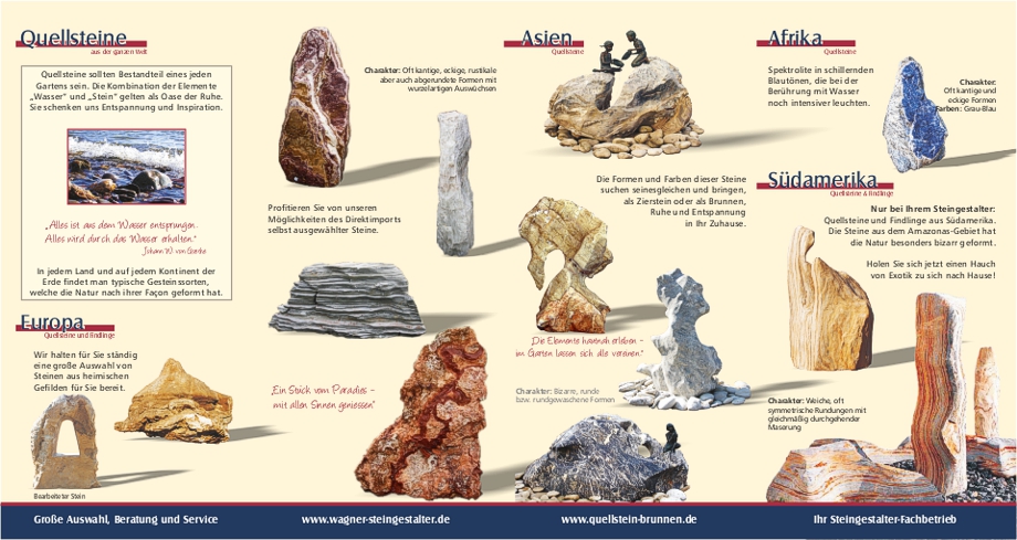 In unseren Quellstein- und Brunnenausstellungen können Sie aus über 100 verschiedenen Unikaten wählen und ständig kommen neue Steine dazu.
